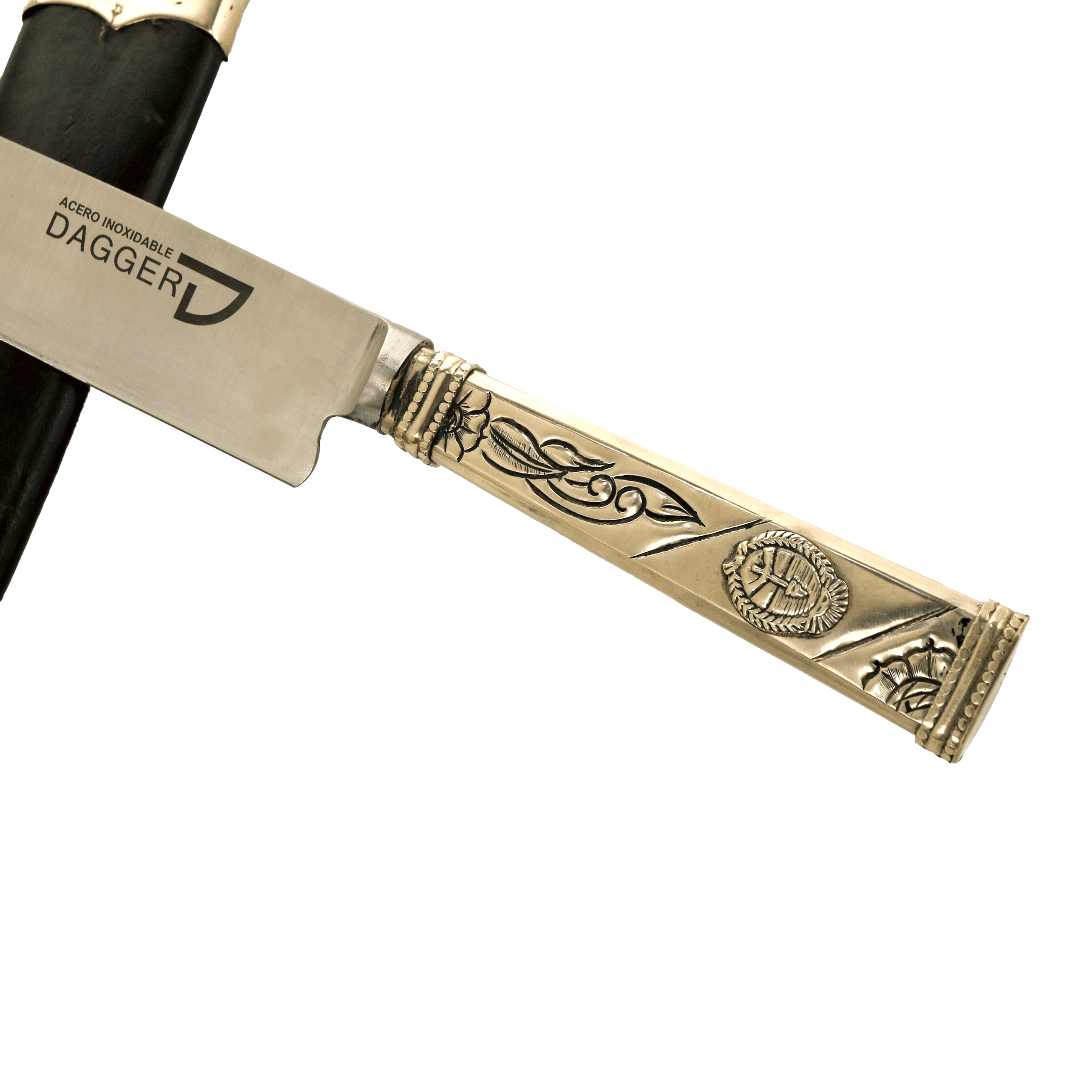 De labrado artesanal único y tradicional, este cuchillo de estilo facón está compuesto por:
