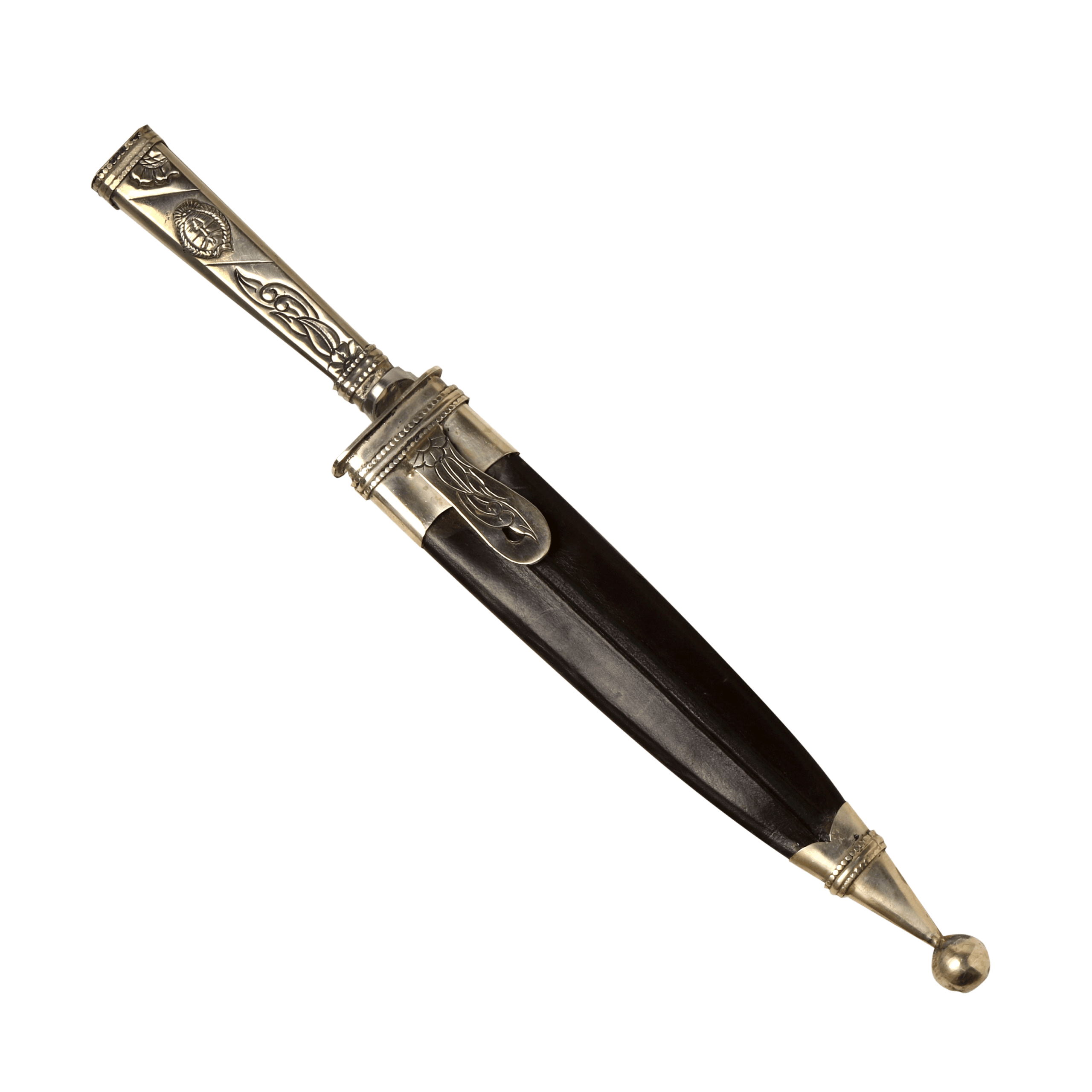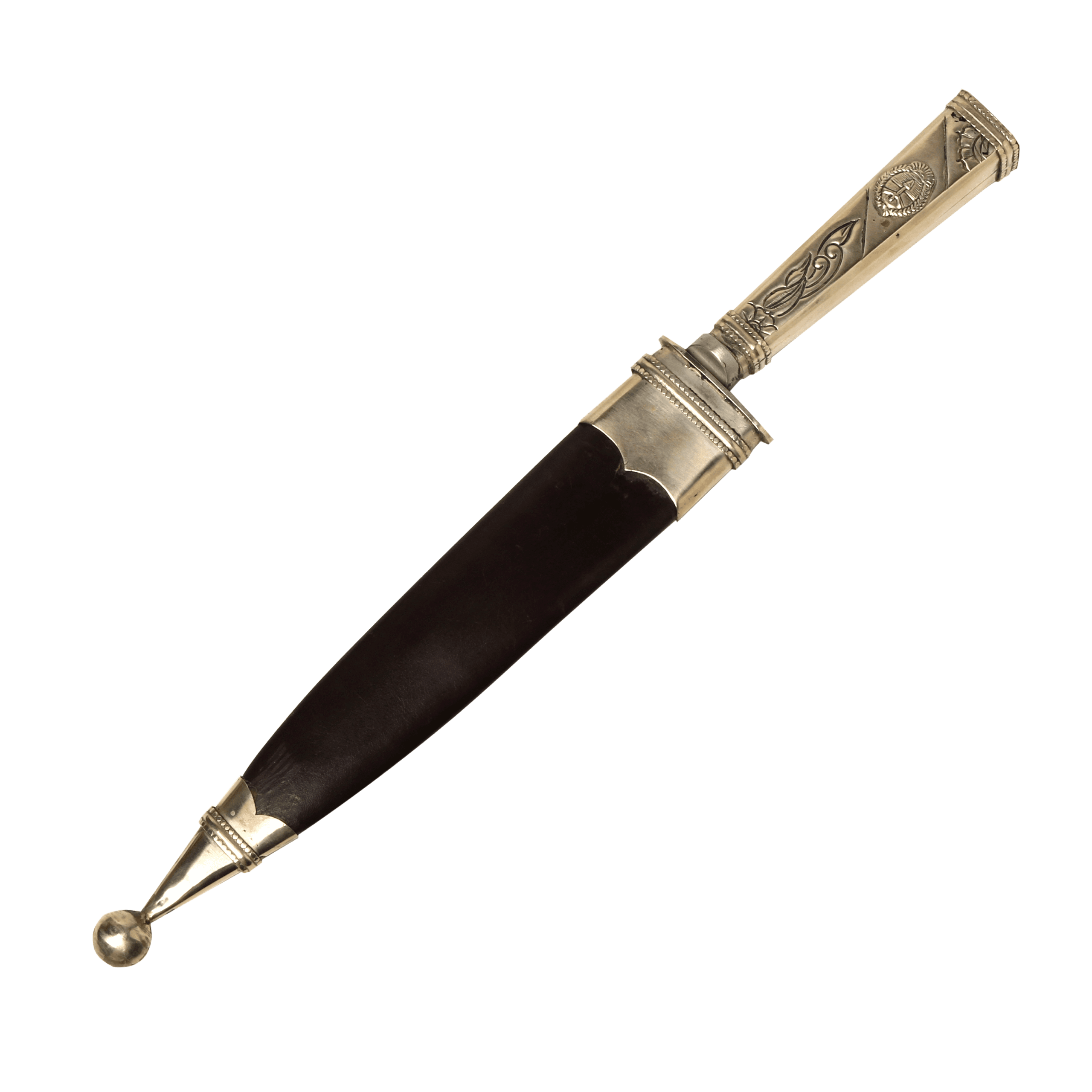 - Cabo enteramente de alpaca, con trabajo labrado y cincelado del escudo nacional argentino