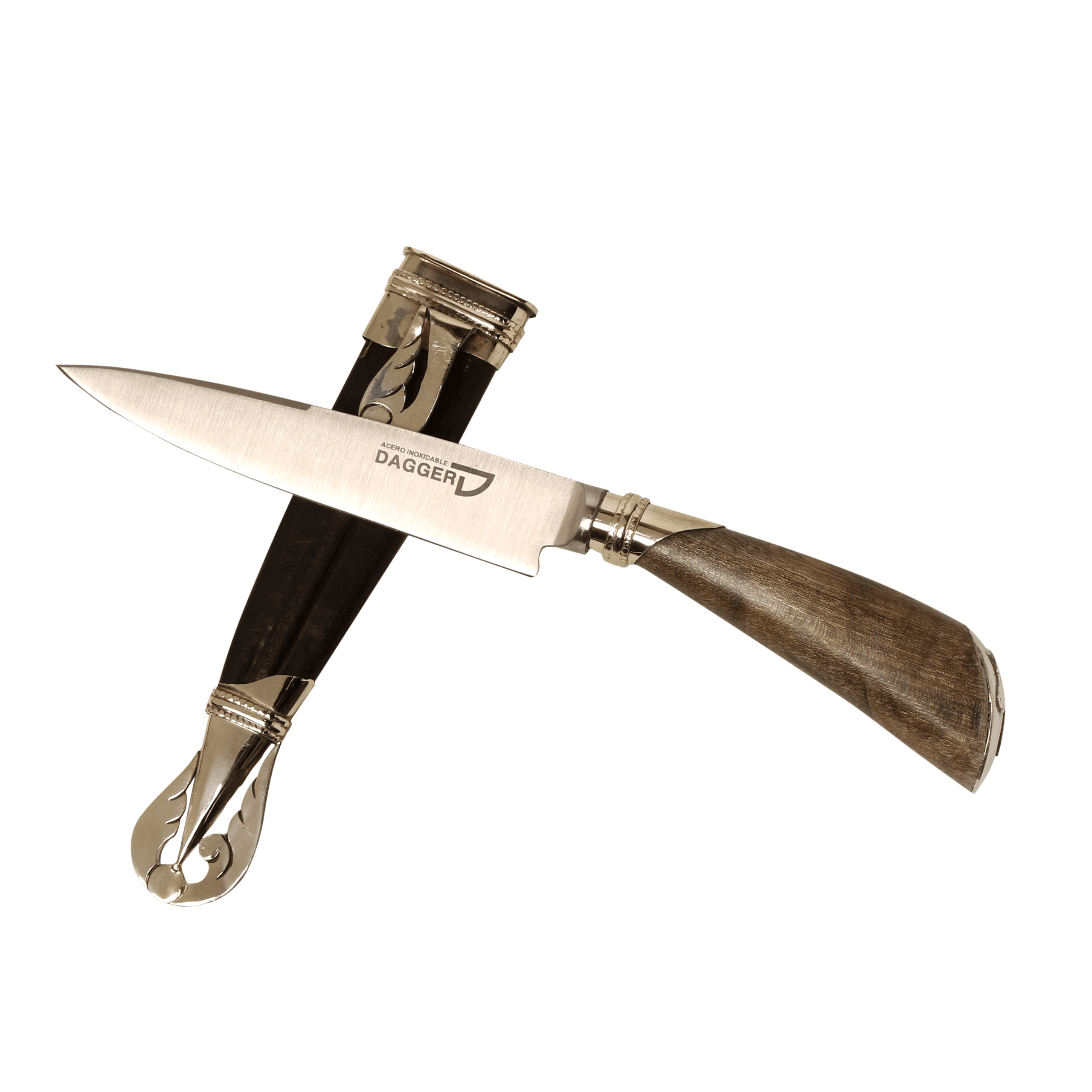 Forjamos nuestros cuchillos artesanales con Hojas Dagger de Acero Inoxidable 420. Frente a otros, este acero posee una alta resistencia a la oxidación, buena tracción y firmeza excepcional. Esto permite un uso intensivo sin riesgo alto de desgaste o rotura.