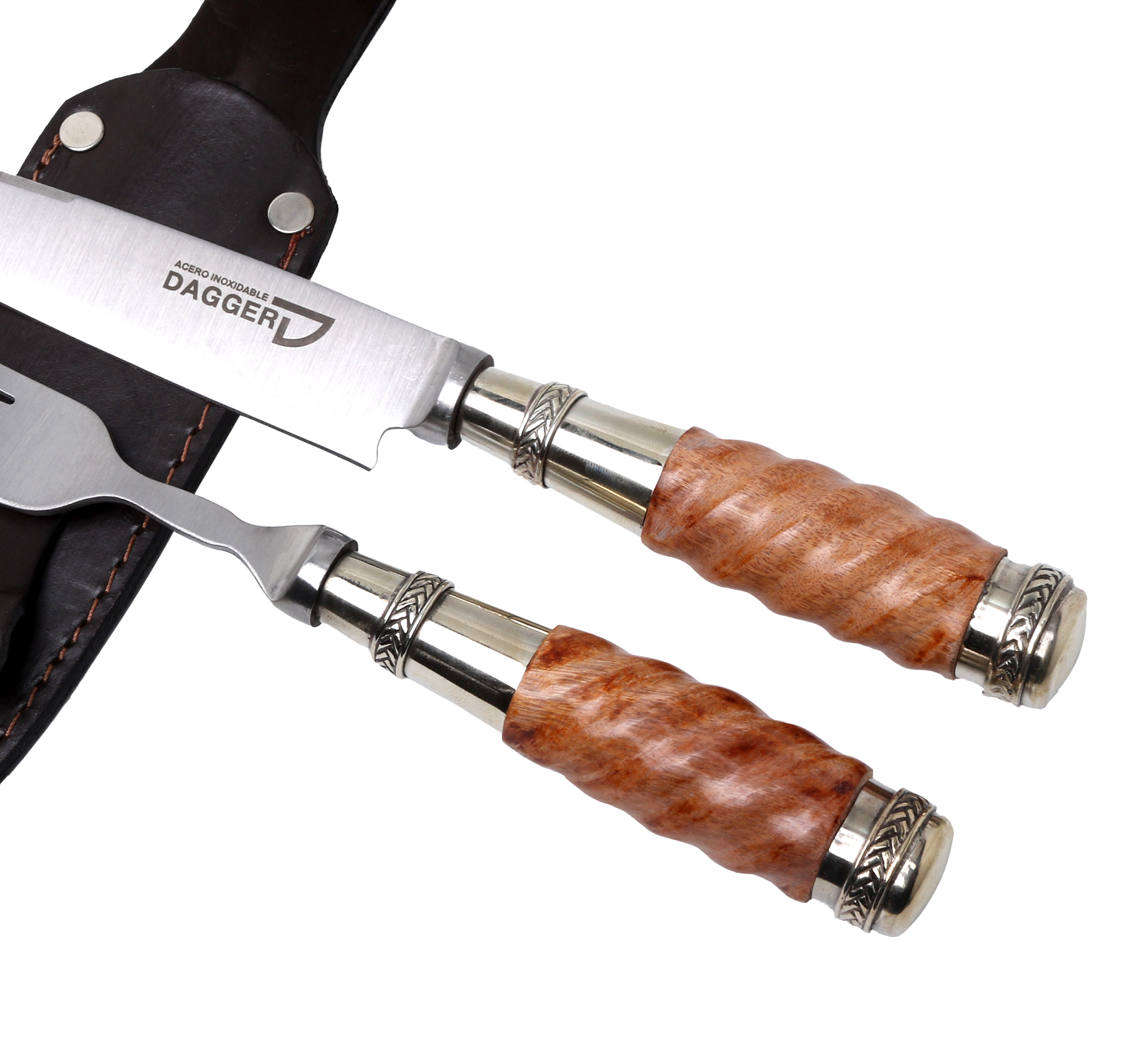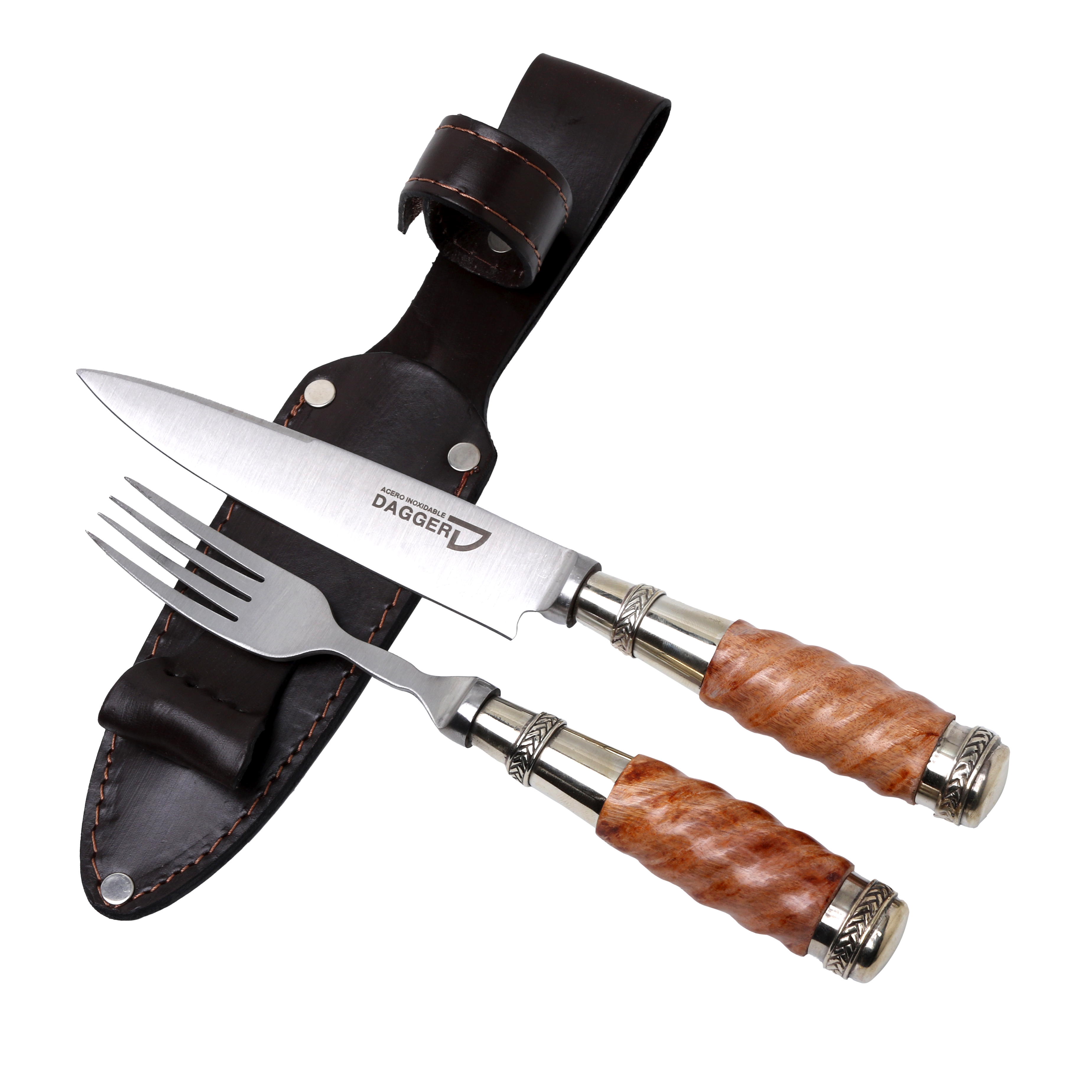 Forjamos nuestros cuchillos artesanales con Hojas Dagger de Acero Inoxidable 420. Frente a otros, este acero posee una alta resistencia a la oxidación, buena tracción y firmeza excepcional. Esto permite un uso intensivo sin riesgo alto de desgaste o rotura.