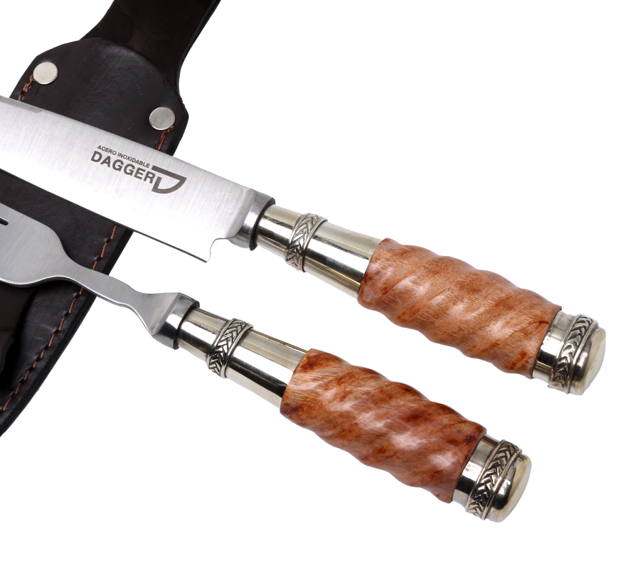 Juego de Picnic Cabo Madera Galloneada y Doble Virola de Alpaca