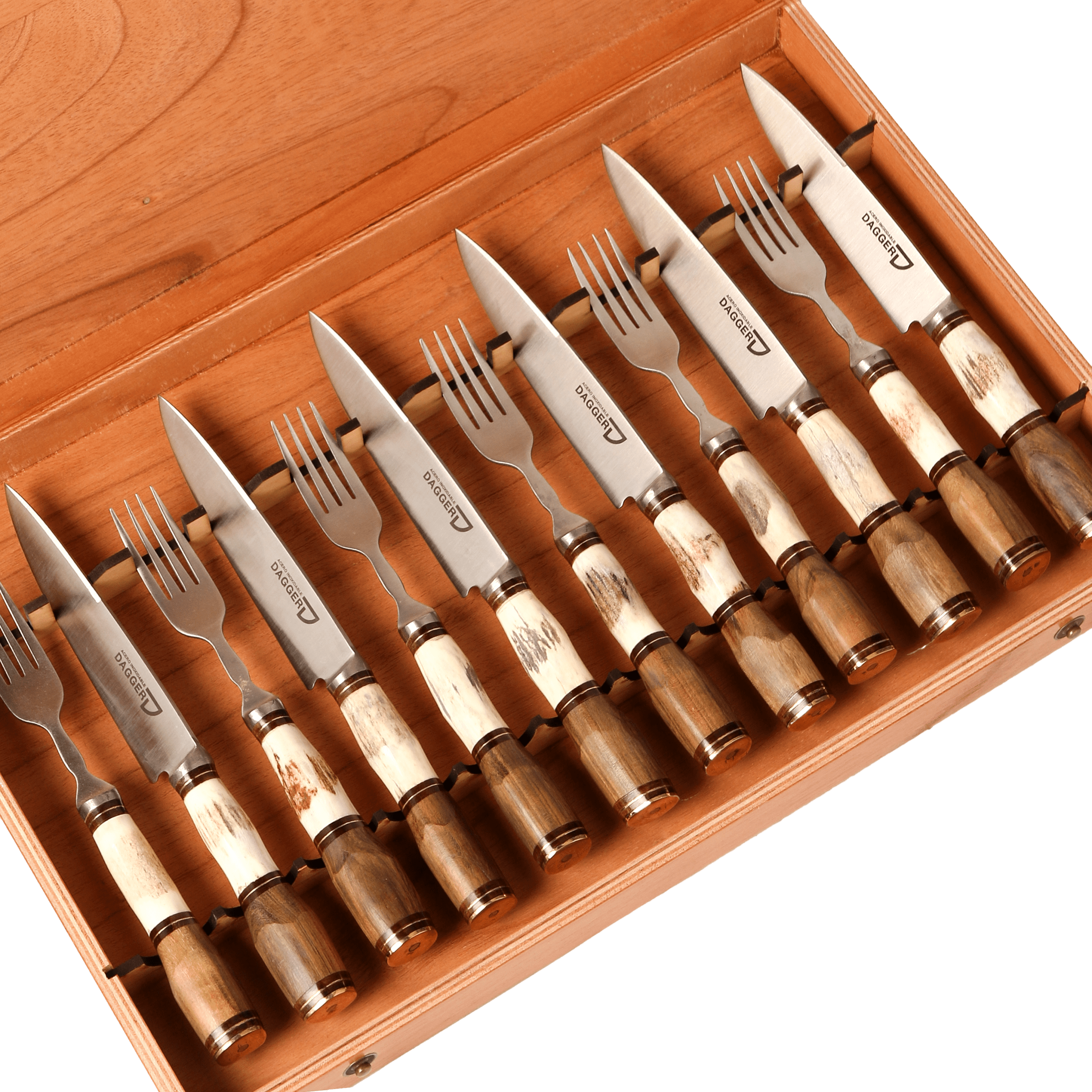 Set de 6 Juegos de Picnic Cabo Ciervo y Madera 14 cm en Caja de Cedro